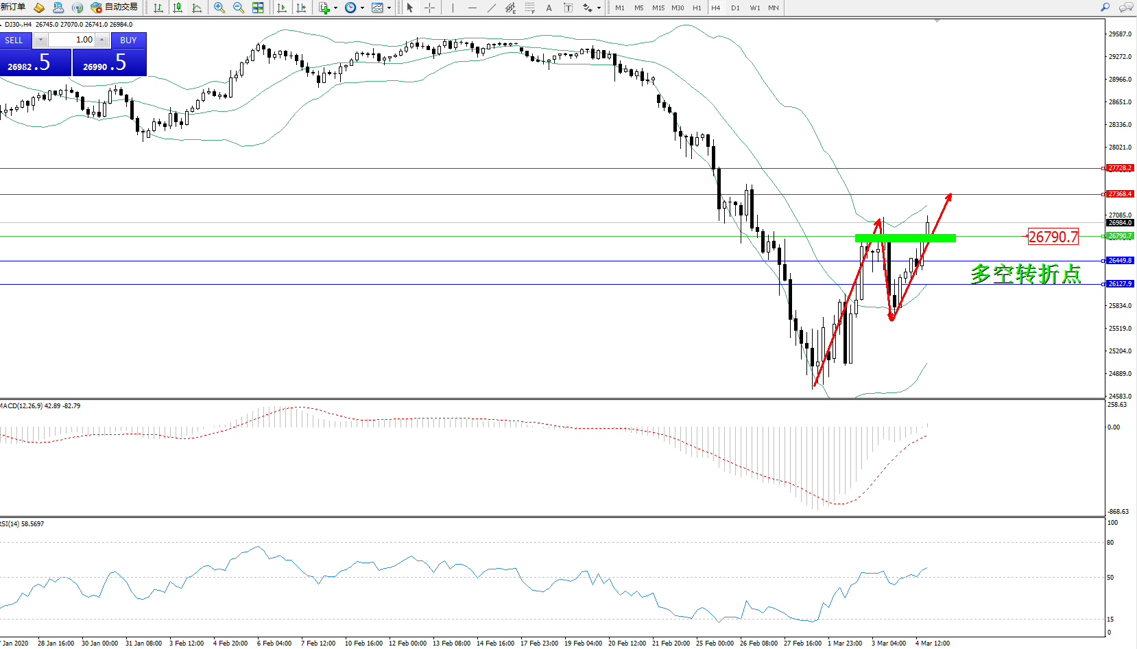 道琼斯指数3月4日(周三)收盘上涨1173.50点,涨幅4.53%,报27090.86点。美国10年期国债收益率在1%下方徘徊,而市场认为美联储的行动还没结束,之后会有进一步的降息。此外,美联储的行动也加大了其他央行宽松行动的压力,主要央行宽松的预期均有所升温,这带给股市长期的支撑。美联储降息50个基点之后的新闻发布会上,美联储主席鲍威尔的措辞是有点模糊的。一方面,他确认为目前的政策立场是适宜的,另一方面,他又指出美联储“准备好了使用相关工具并作出适当行动”。