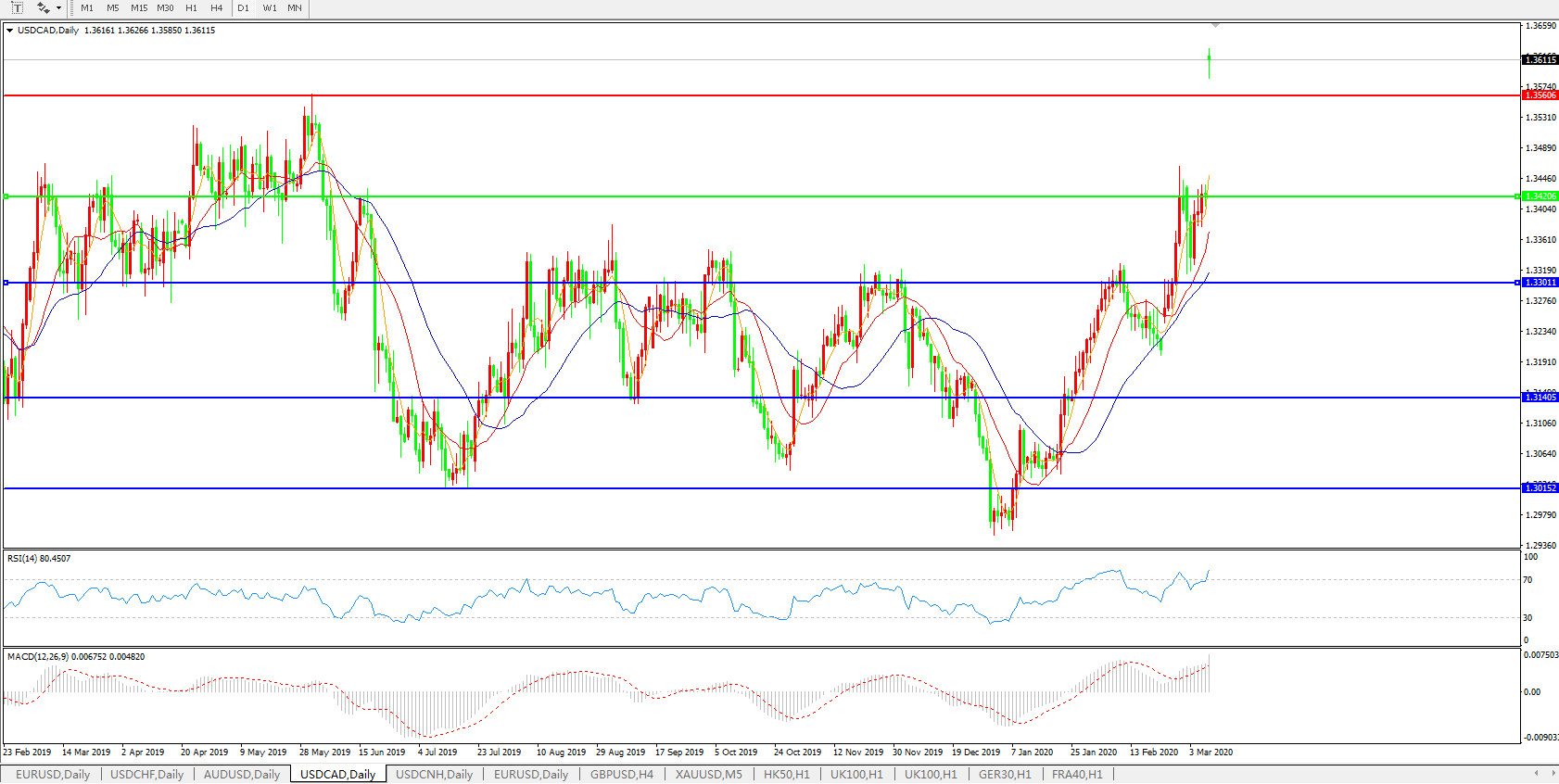 美元兑加元USDCAD    日线图: