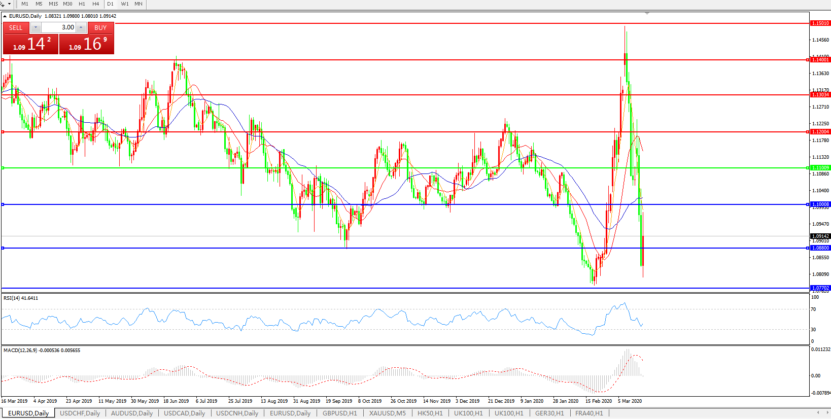 欧元兑美元EURUSD   日线图: