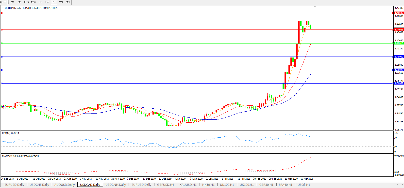 备选策略: 在1.4200之下,看跌,目标价位为1.4200、1.4000