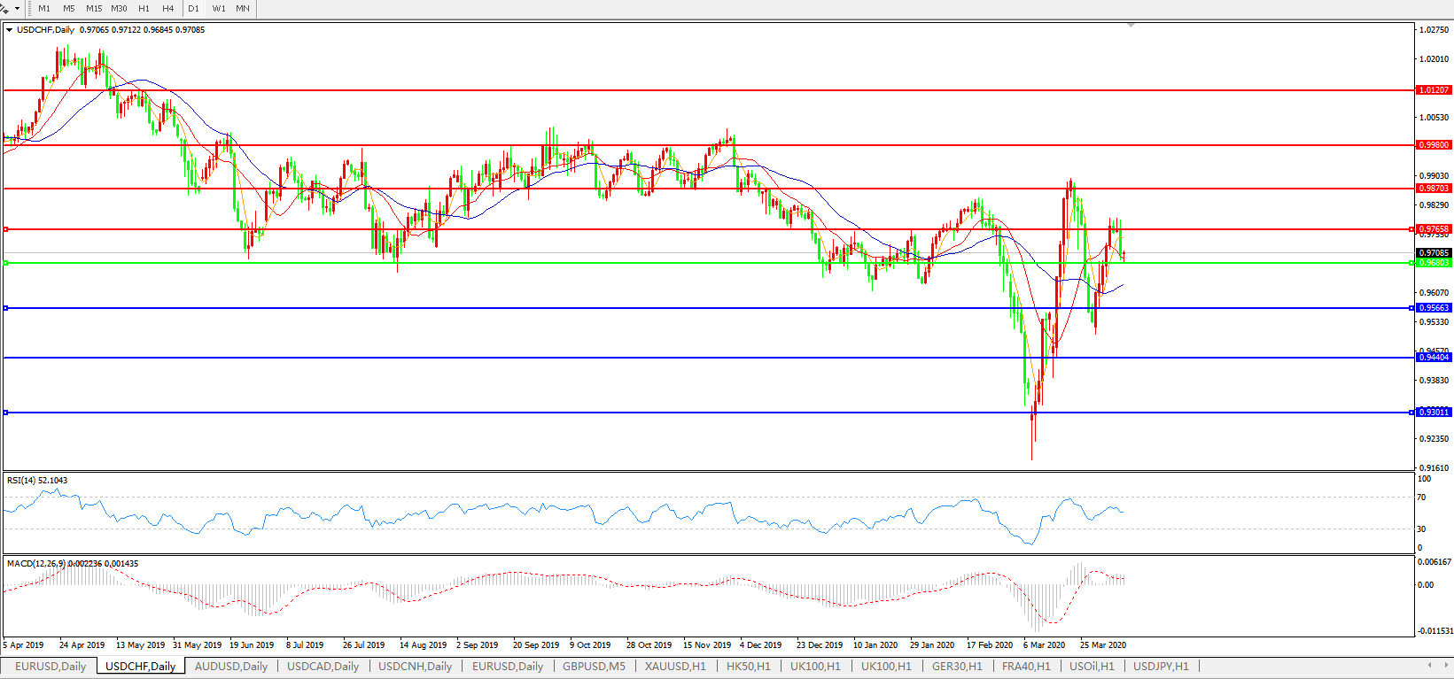 交易策略:0.9680上方看涨,目标0.9765、0.9870