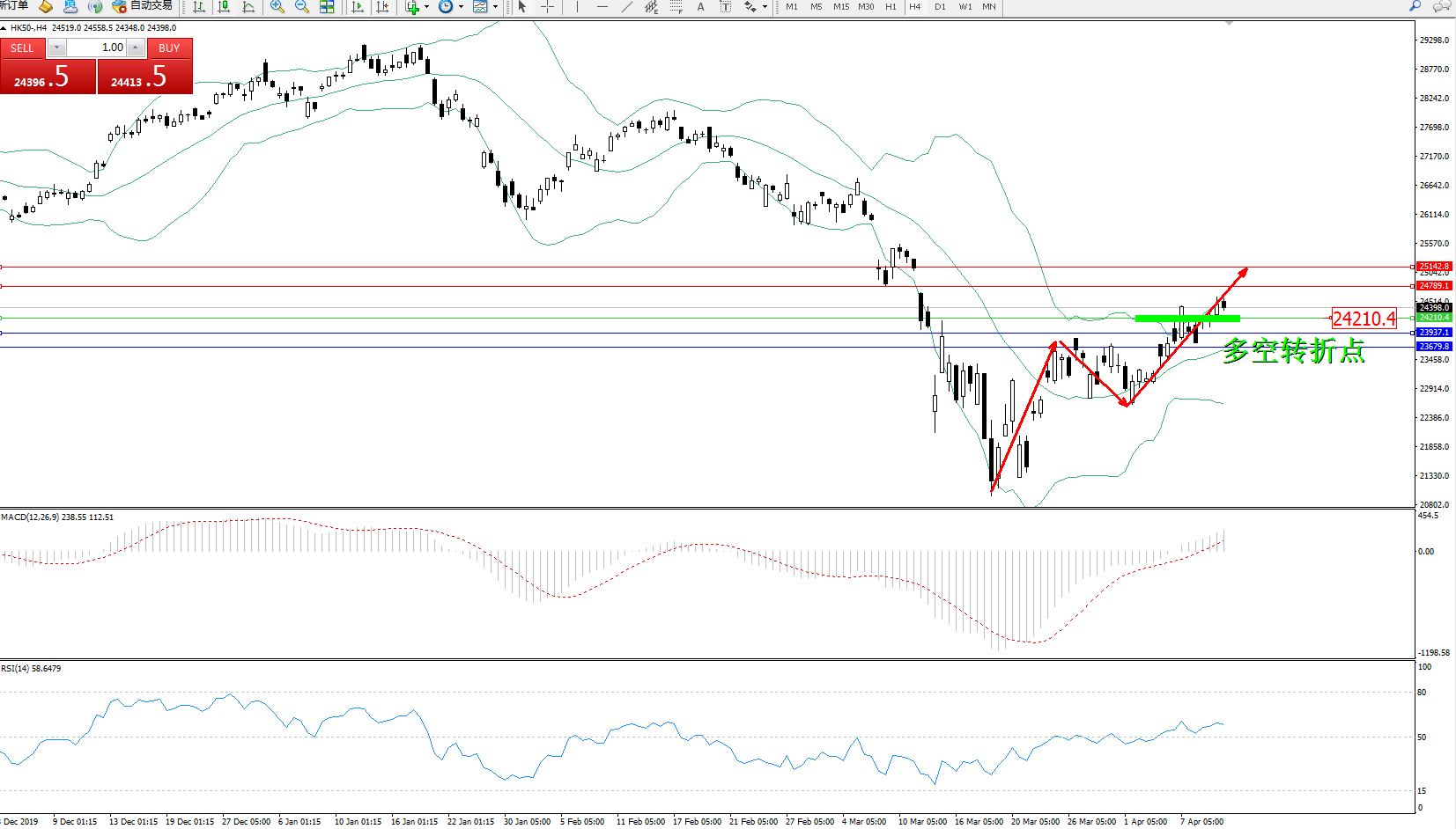 香港恒生指数4月14日(周二)收盘上涨135.07点,涨幅0.56%,报24435.40点;港股市场呈震荡行情,主要股指皆有涨幅。主板成交量为1114.59亿港元,港股通净流入21.35亿港元。软件股与特斯拉概念强势领涨,重型机械、物管股、电池股、黄金股、建材水泥集体上涨,因传闻中信建投逾中信证券合并,中资券商股午后崛起大涨,股由于全球流动性以及新冠疫情的原因大幅下跌,目前的估值仍处于历史低位,分别在2008年、2016年出现了类似的情况,之后都迎来非常强劲的上涨行情,随着疫情令经济陷入衰退,促使各地央行推出庞大的刺激计划,市场担心新冠病毒大流行将对全球经济造成毁灭性影响,冲击企业收益,同时增加对避险资产的需求。