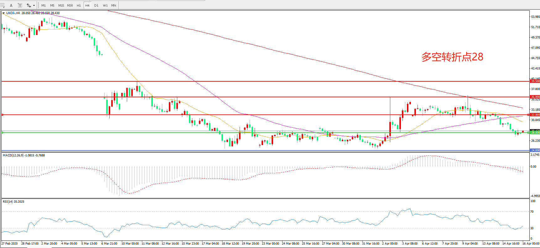 周三(4月15日),在国际能源署预计全球原油需求将持续萎缩后,布伦特原油跌幅一度扩大至8%,而最新消息显示,特朗普政府在考虑新的减产措施,布伦特原油震荡走高,截止发稿前,收报28.46美元/桶。