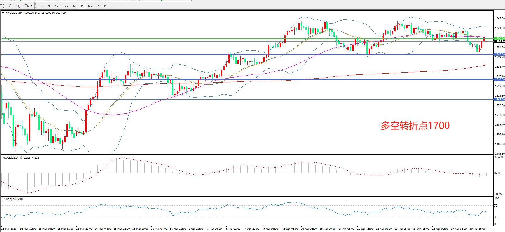 备选策略:在1700.00 之下看跌,目标1665.00 1610.00