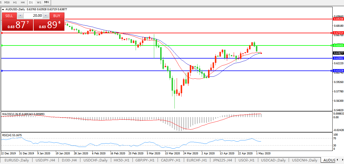 交易策略:0.6500下方看跌,目标0.6300、0.6100