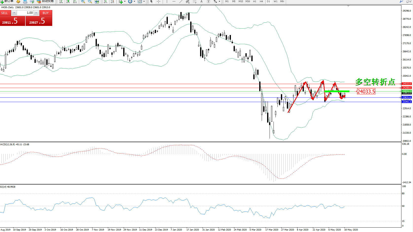 恒指HK50 ——日K线图显示: