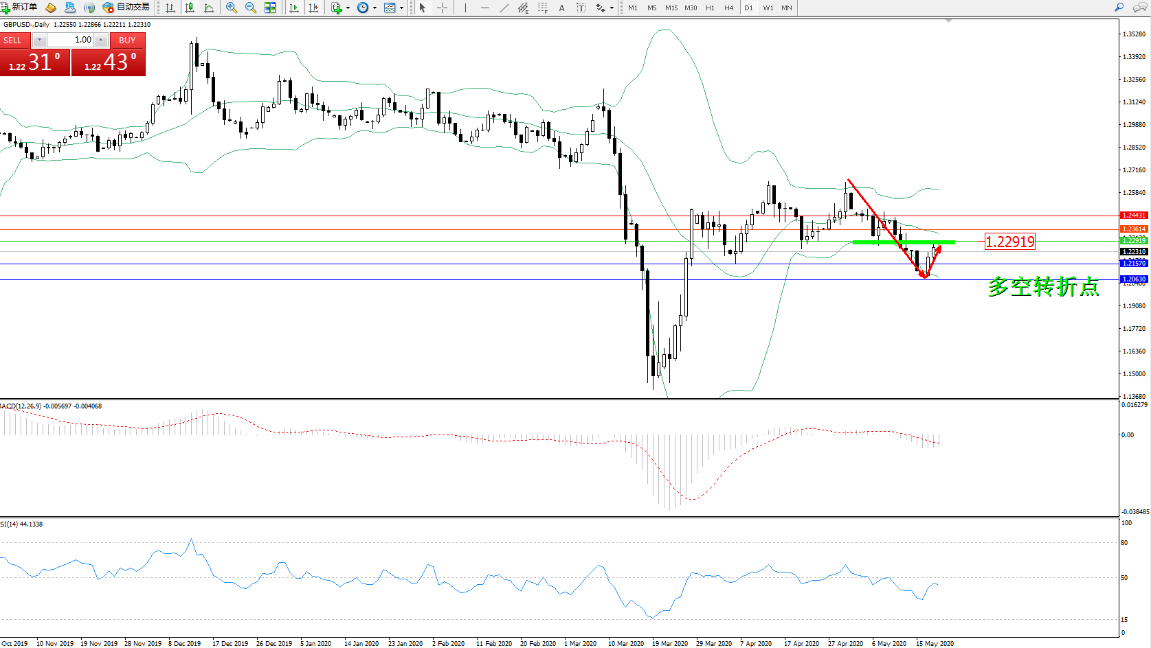 交易策略:1.22919下方看跌,目标1.215701.20630