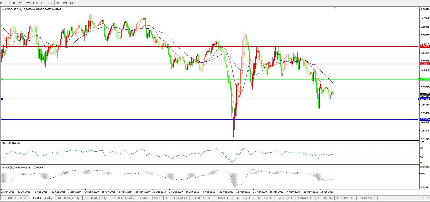 交易策略:0.9575下方看跌,目标0.9440、0.9300