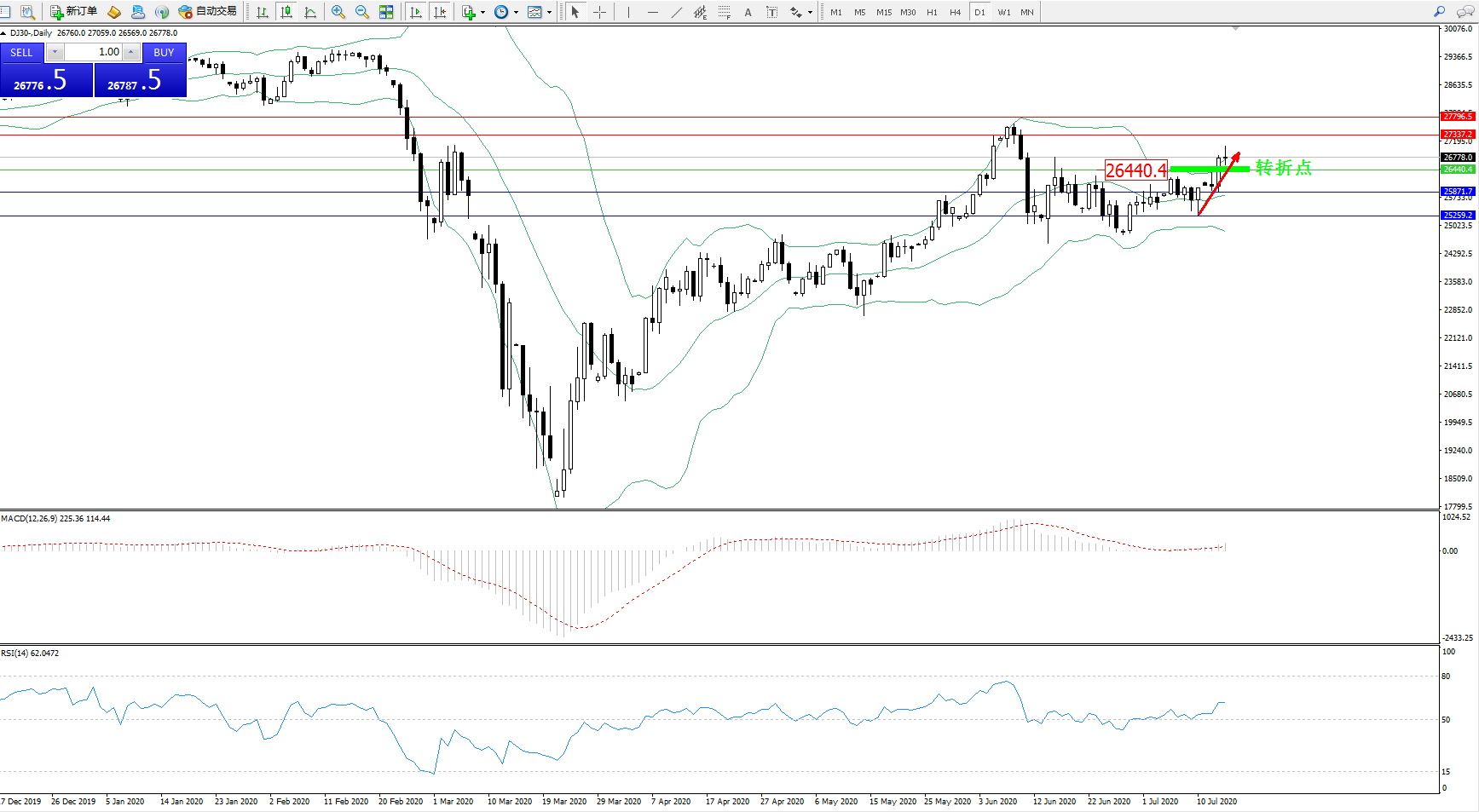 道琼斯指数715日(周三)收盘上涨227.40点,涨幅0.85%,报26870.03点。美股三大指数集体收涨,对新冠疫苗的乐观情绪推动美国股市升至一个多月高位;病毒疫苗激发了更多看涨情绪,忘记估值,忘记收益,忘记经济新闻。Moderna实验性新冠疫苗在一项正在进行的早期研究中表明其是安全的,全部45名健康志愿者体内都出现免疫反应,这带动了市场的冒险情绪。但随着贸易关系不断恶化,对美国第二波冠状病毒感染影响经济的担忧,仍令市场有理由保持谨慎。