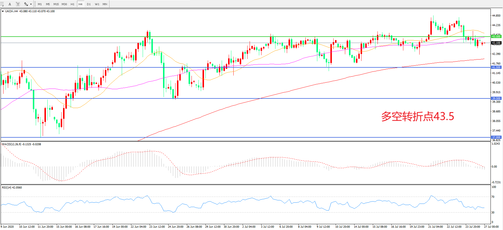上周五(7月24日),受益于美元指数持续走软,布伦特原油震荡反弹,收报43.25美元/桶。欧美力推财政刺激支撑了市场风险偏好,美国新一轮刺激计划也将在8月初给出结果,当前刚好是美国人喜欢驾驶汽车出行的高峰,需求方面的能否有所表现仍是影响油市未来的重要原因。