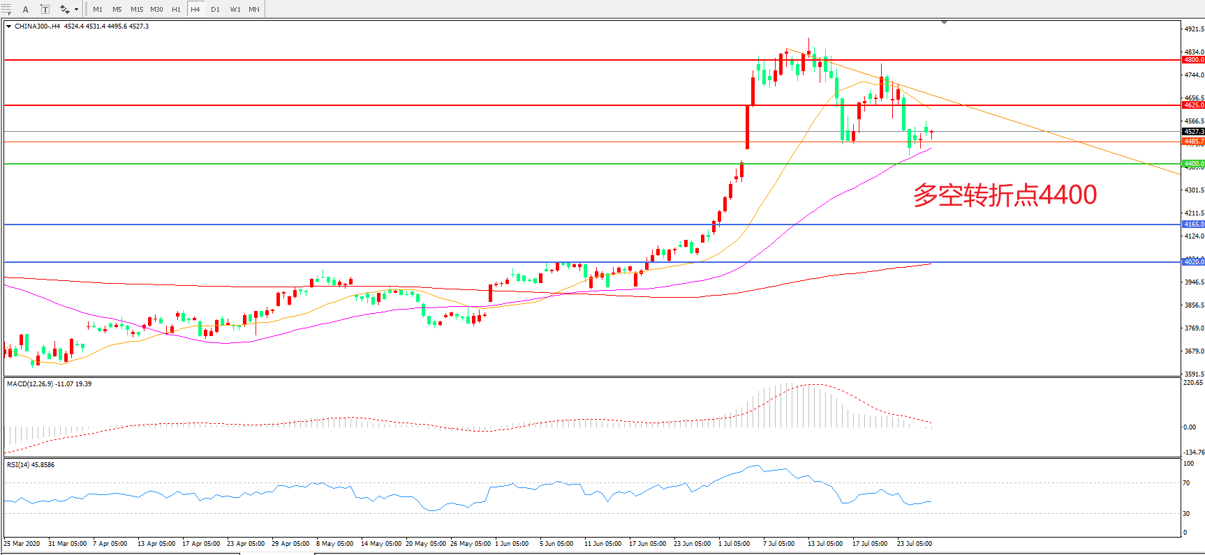 备选策略:在4400.00之下看跌,目标4165.00 4020.00