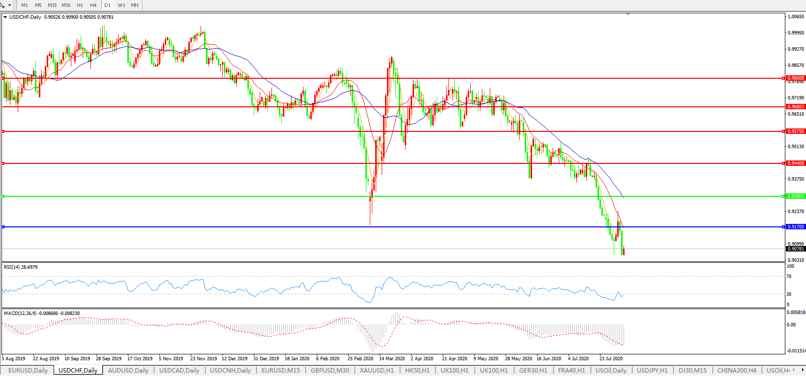交易策略:0.9300下方看跌,目标0.9170、0.9000