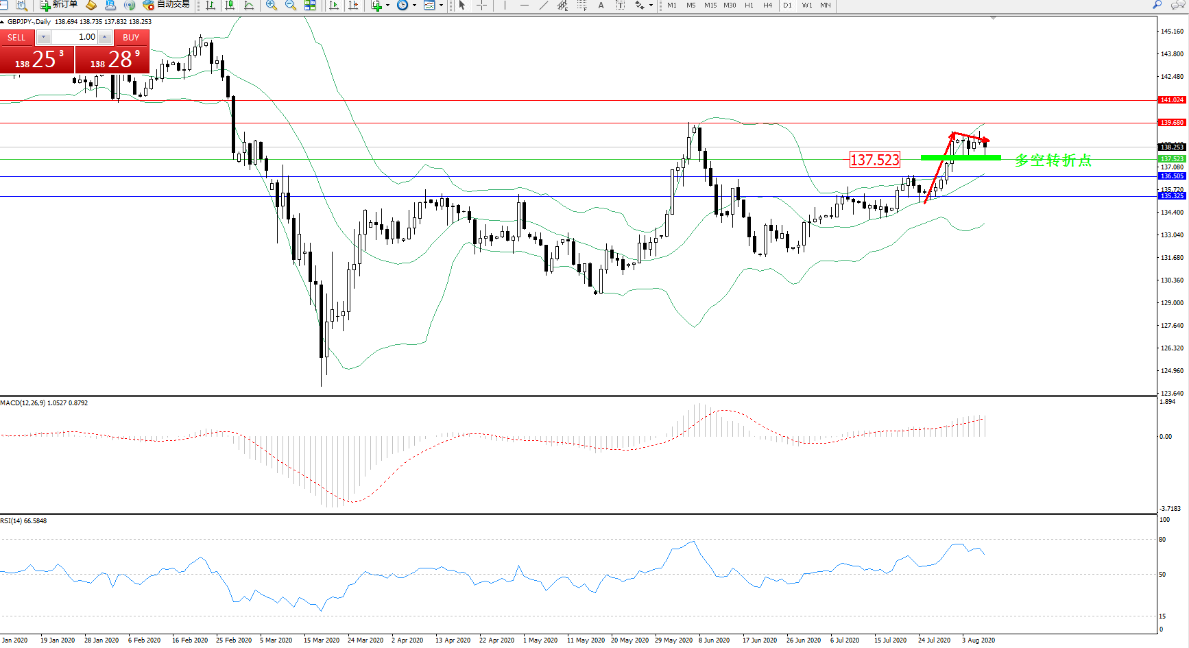 英镑兑日圆纠结于138.253附近徘徊,英国首相约翰逊的发言人表示,过早重启英国经济活动将加剧新冠疫情带来的经济损失。防疫封锁限制解除后,人们对感染病毒的担忧仍未褪去,经济有可能“陷入困境”,出于对健康和失业问题的考虑,需求可能仍然疲软。英国希望很快与日本达成一项贸易协定。日本外务大臣茂木敏充本周将正式访问伦敦。“我们正在取得良好进展,我们希望磋商将很快结束,”这位发言人在例行新闻发布会上告诉记者。茂木敏充访问伦敦,并会见英国外交大臣拉布和国际贸易大臣特拉斯。