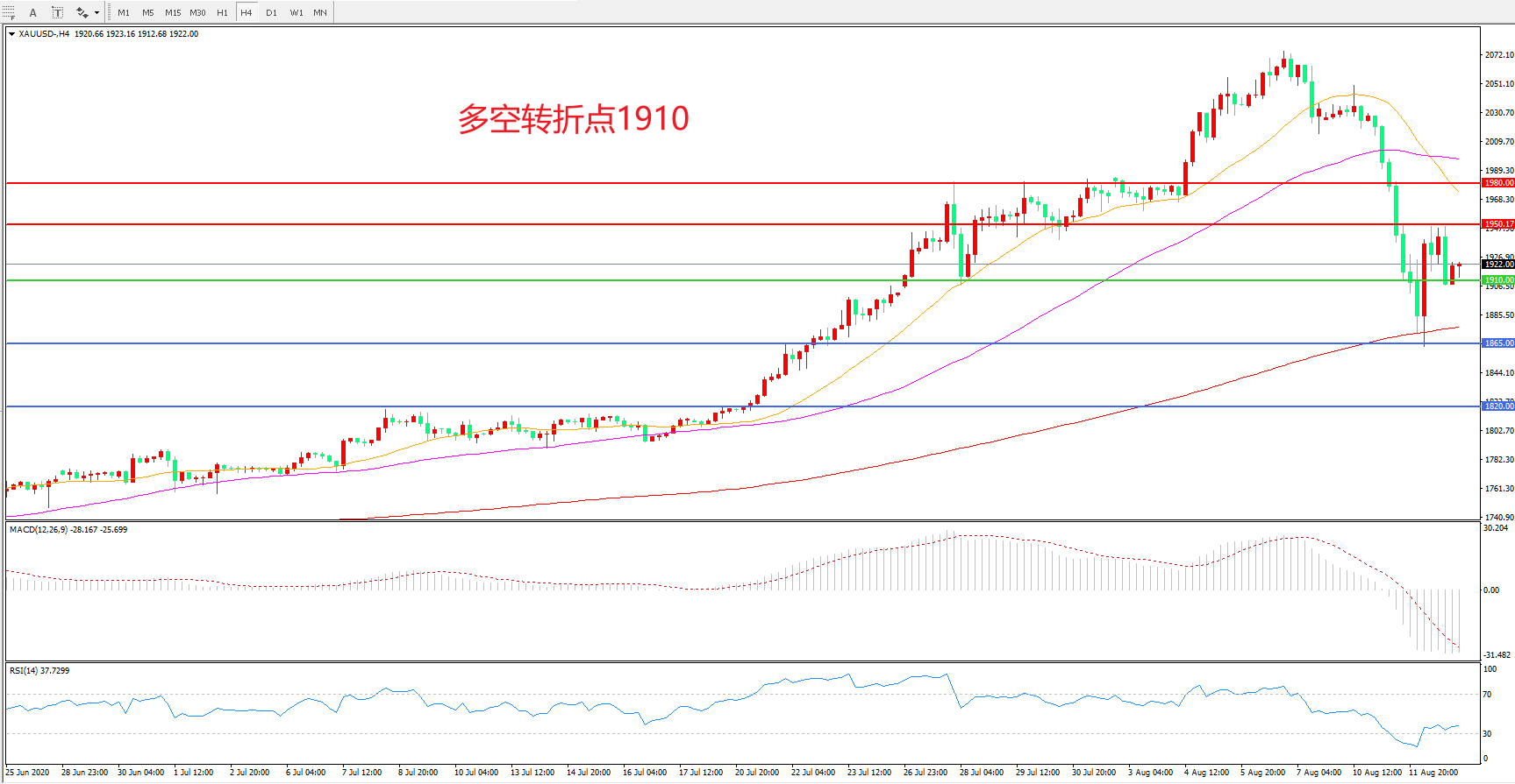交易策略:在1910.00之上看涨,目标1950.00 1980.00