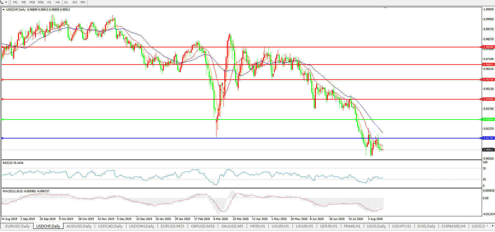 美元兑瑞郎USDCHF 日线图: