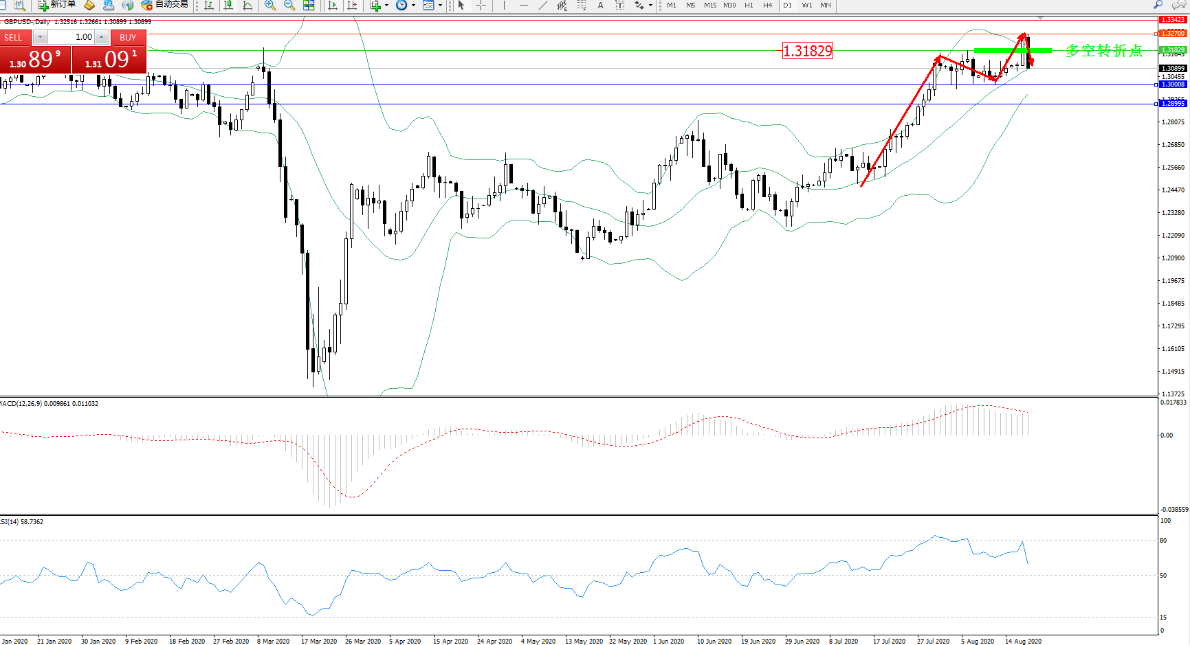 备选策略:1.31829上方看涨,目标1.32700、1.33423