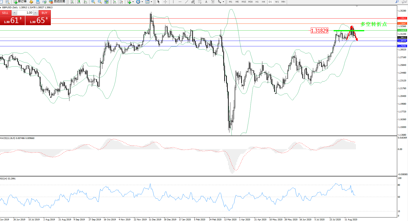 备选策略:1.31829上方看涨,目标1.33047、1.33913