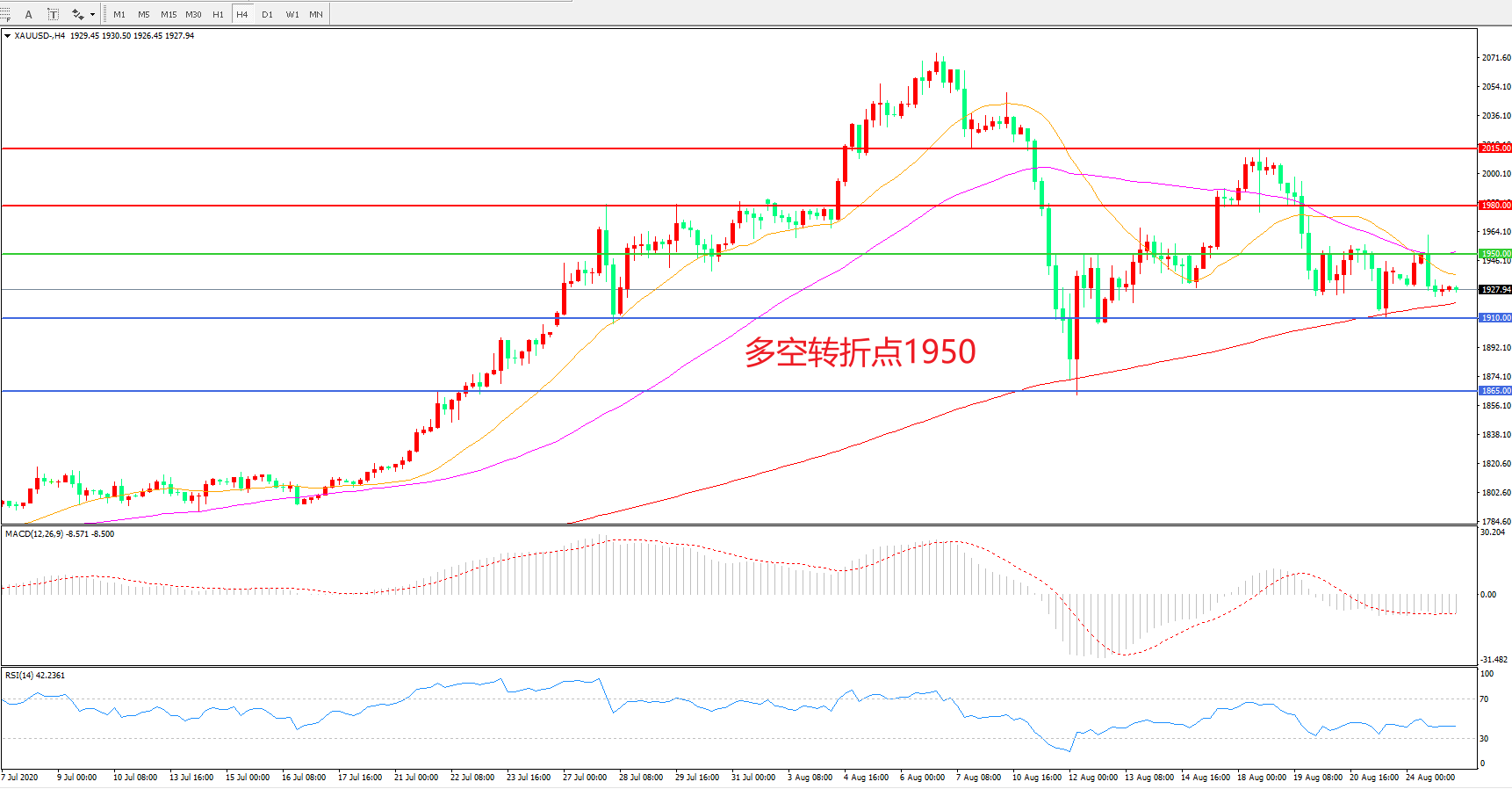 现货黄金XAU/USD    4小时图