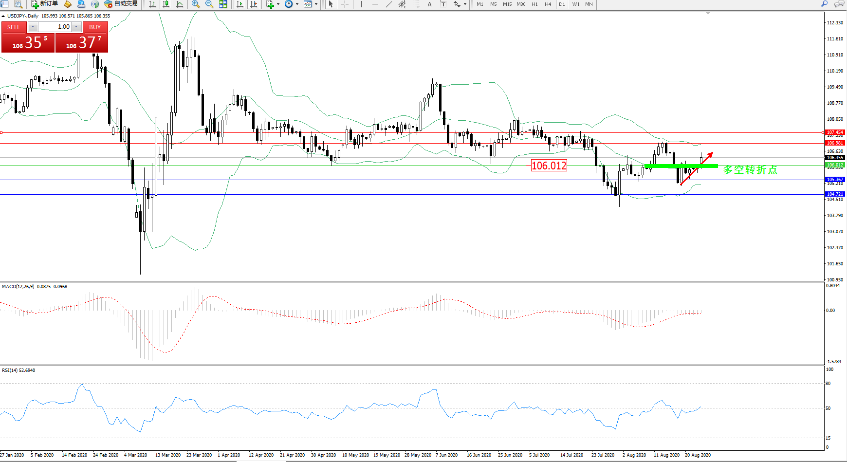 多空转折点:106.012