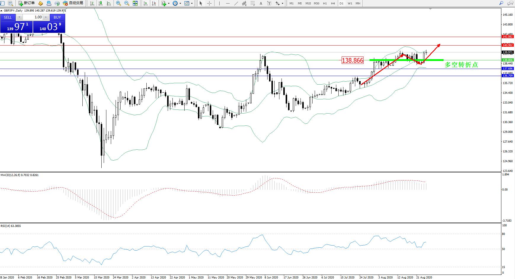 交易策略:138.866上方看涨,目标140.902、142.082