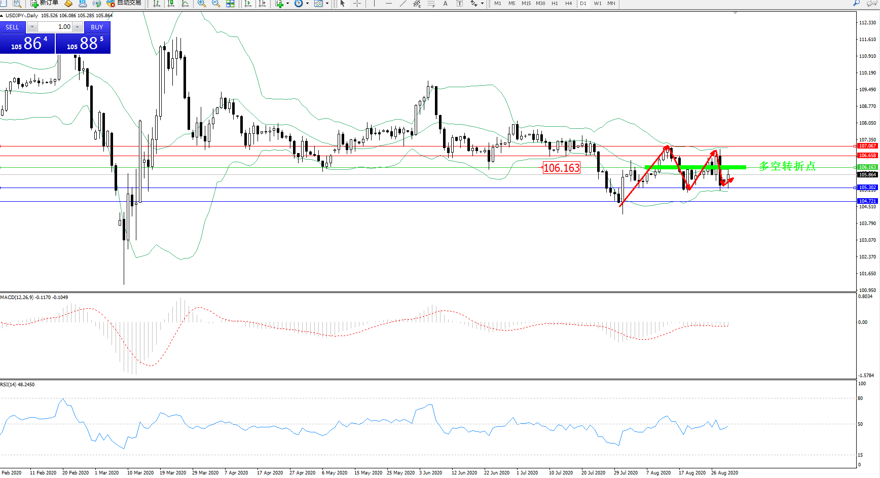 多空转折点:106.163