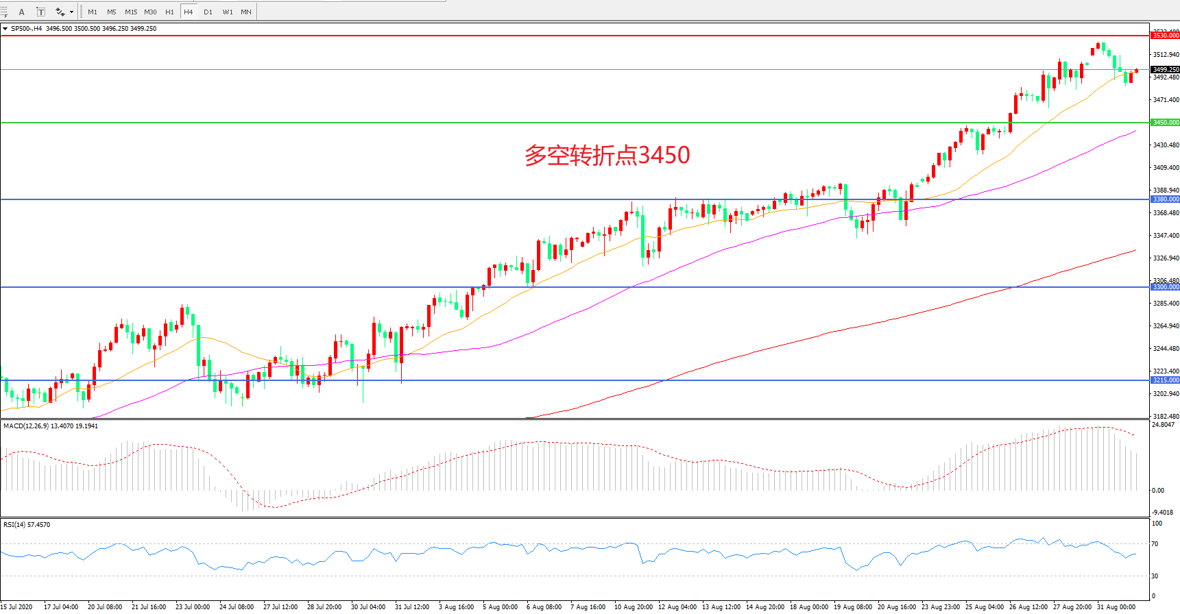交易策略:在3450.00之上看涨,目标3530.00 3600.00