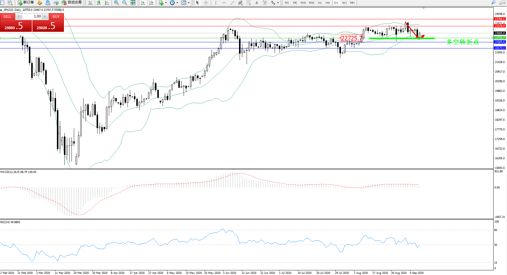 日经225指数9月9日(周三)收盘下跌239.63点,跌幅1.03%,报23034.50点。周三亚市早盘维持颓势低位盘整,因美股延续暴跌回调势头,全球地缘风险也一度进一步趋紧,疫情下日本二季度经济遭受重挫。日本二季度资本支出实际下滑4.7%,远超初值时预估的-1.5%;最新的数据凸显了日本在试图摆脱疫情导致的经济衰退时面临的挑战,现任首相安倍晋三已宣布因健康问题辞职,导致日本目前在制定经济复苏计划上缺乏一定的领导能力,因此无论谁继任首相一职,都将面临严峻的挑战。日本首都东京都依旧是疫情的“重灾区”。过去24小时,东京都新增新冠肺炎确诊病例77例,自8月24日以来时隔2周新增确诊病例低于100例。菅义伟在采访中甚至建议,在疫情平息后,将着手改革应对疫情的主力机构:厚生劳动省。他表示,疫情是很大的公共卫生事件,事实证明,仅凭厚生劳动省一己之力是无法应对的,因此,将在未来改革这一机构,为之后类似的突发事件未雨绸缪。