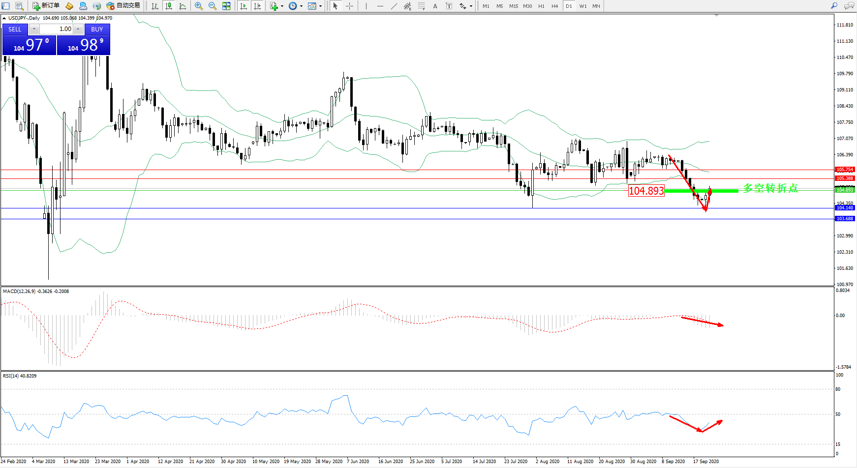 技术点评:空头动力延续布林带指标下轨附近持续下探态势良好,跌破下轨附近节点后得到短暂支撑快速反转上移,突破关键转折点后有继续回升迹象,布林带指标呈张口走势持续中,MACD指标处于0轴线下方空头区域维持弱势下移走势,RSI指标处于空头区域弱势平移后有回升迹象;