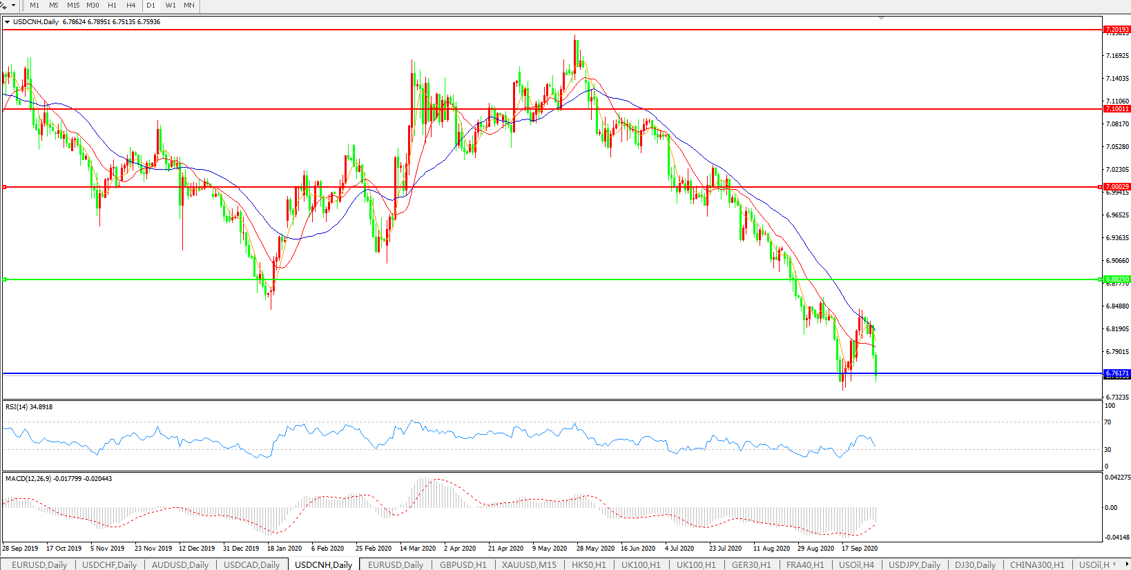周三离岸人民币涨0.48%,至6.7838元兑1美元 ,美元下跌和中国强劲的PMI指数推动离岸人民币升至一周高点,上看9月16日触及的2020年高点6.7424元; 一个月离岸人民币隐含波动率跌至6.41%,为本周首次下跌;美元指数连续第三天走低,提振新兴市场货币;离岸人民币受益于积极的外部环境,第三季度全季上涨4.05%,为2010年该货币对开始交易以来的最大季度涨幅; 在岸人民币兑美元第三季度上涨3.88%,创下自2008年第一季度以来的最大季度涨幅