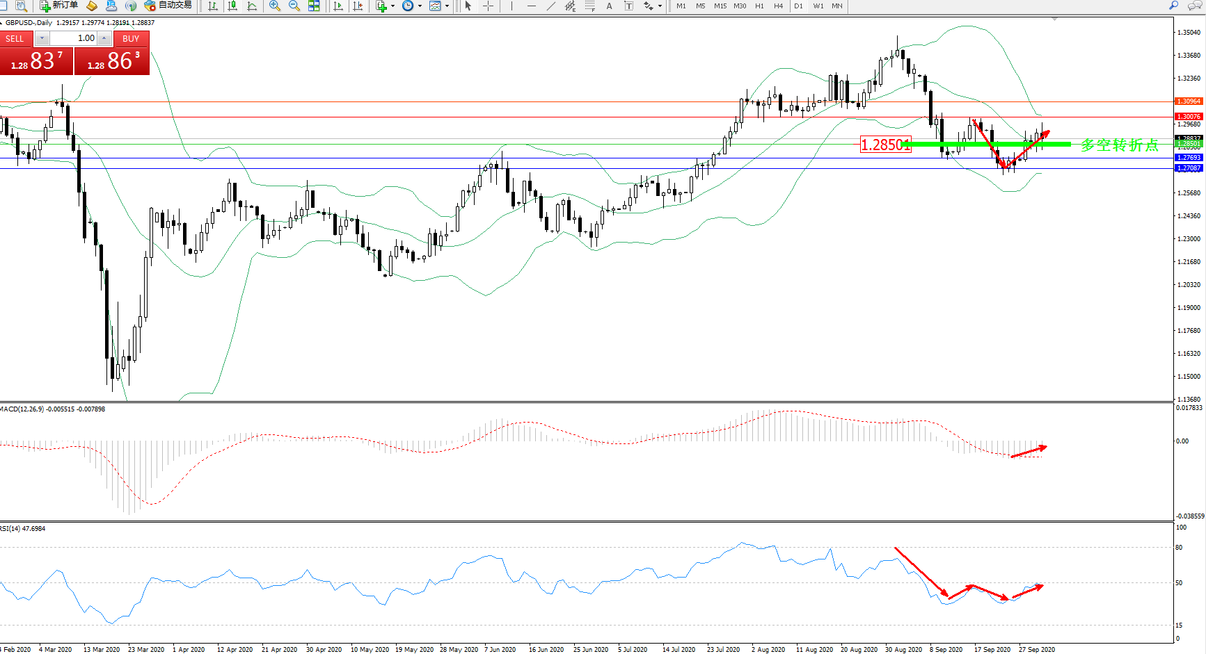 交易策略:1.28501上方看涨,目标1.30076、1.30964