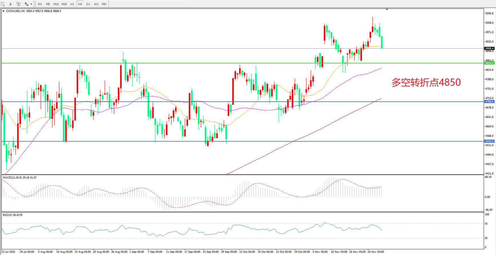 交易策略:在4850.00之上看涨,目标5000.00 5150.00