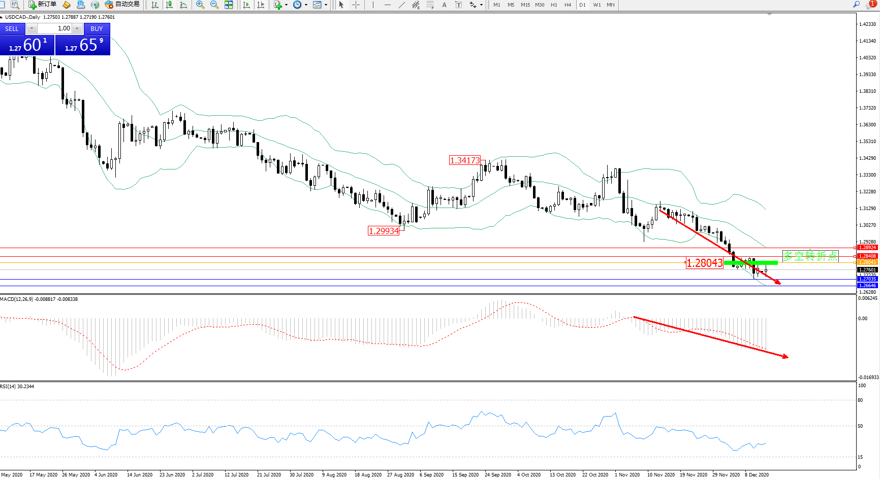 交易策略:1.28043下方看跌,目标1.27035、1.26646