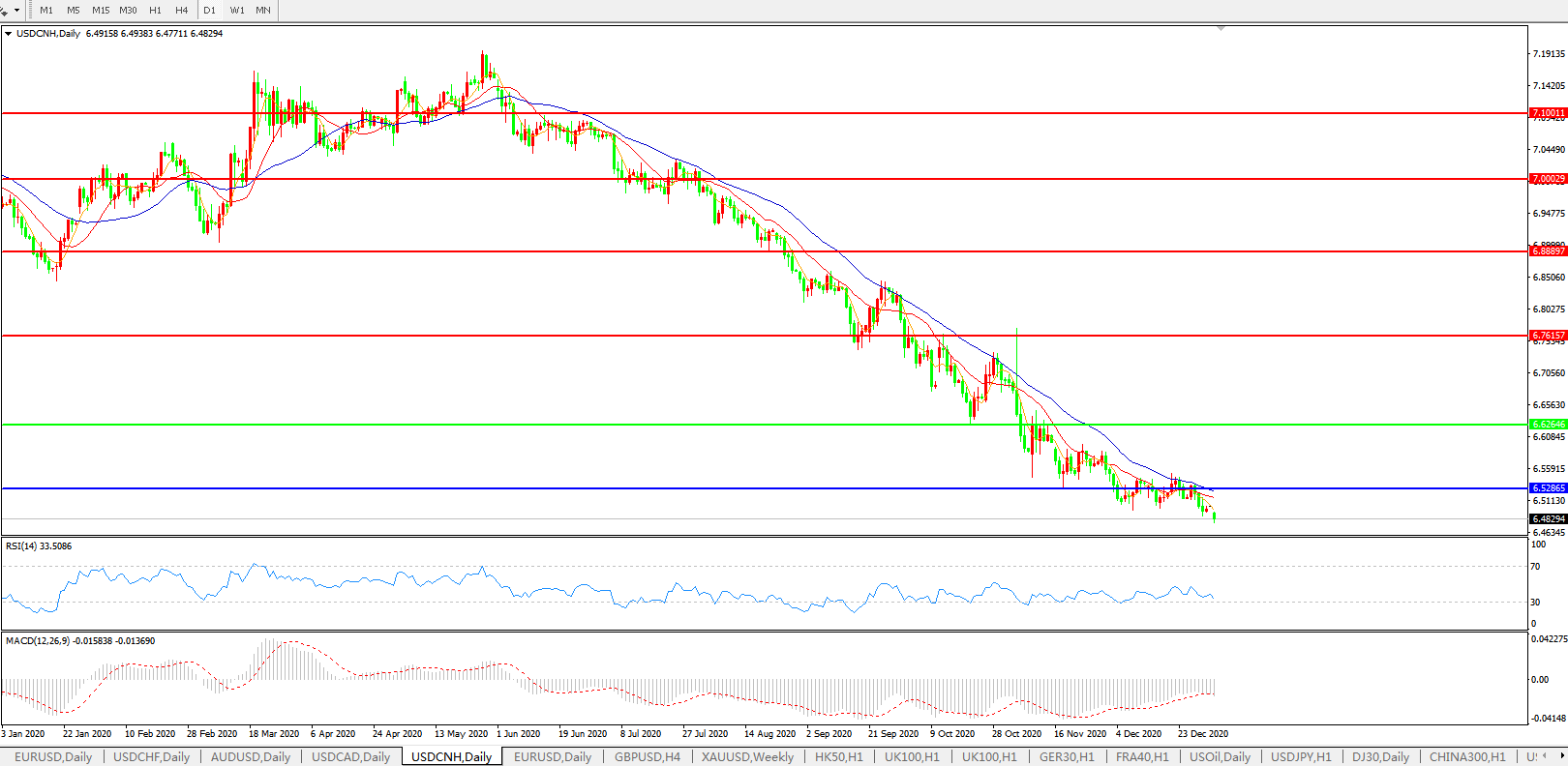 备选策略: 在6.6265之上,看涨,目标价位为6.7615,然后为6.8889。