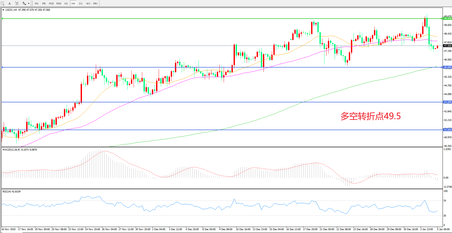 周一(1月4日),OPEC+会议如期召开,包括沙特在内的多数OPEC+成员国支持2月份继续维持现有产量,但俄罗斯却意外要求增产,分歧之下,OPEC将继续举行会谈,受此消息影响,国际油价大幅下挫,美国WTI原油重挫逾2%,收报47.47美元/桶。