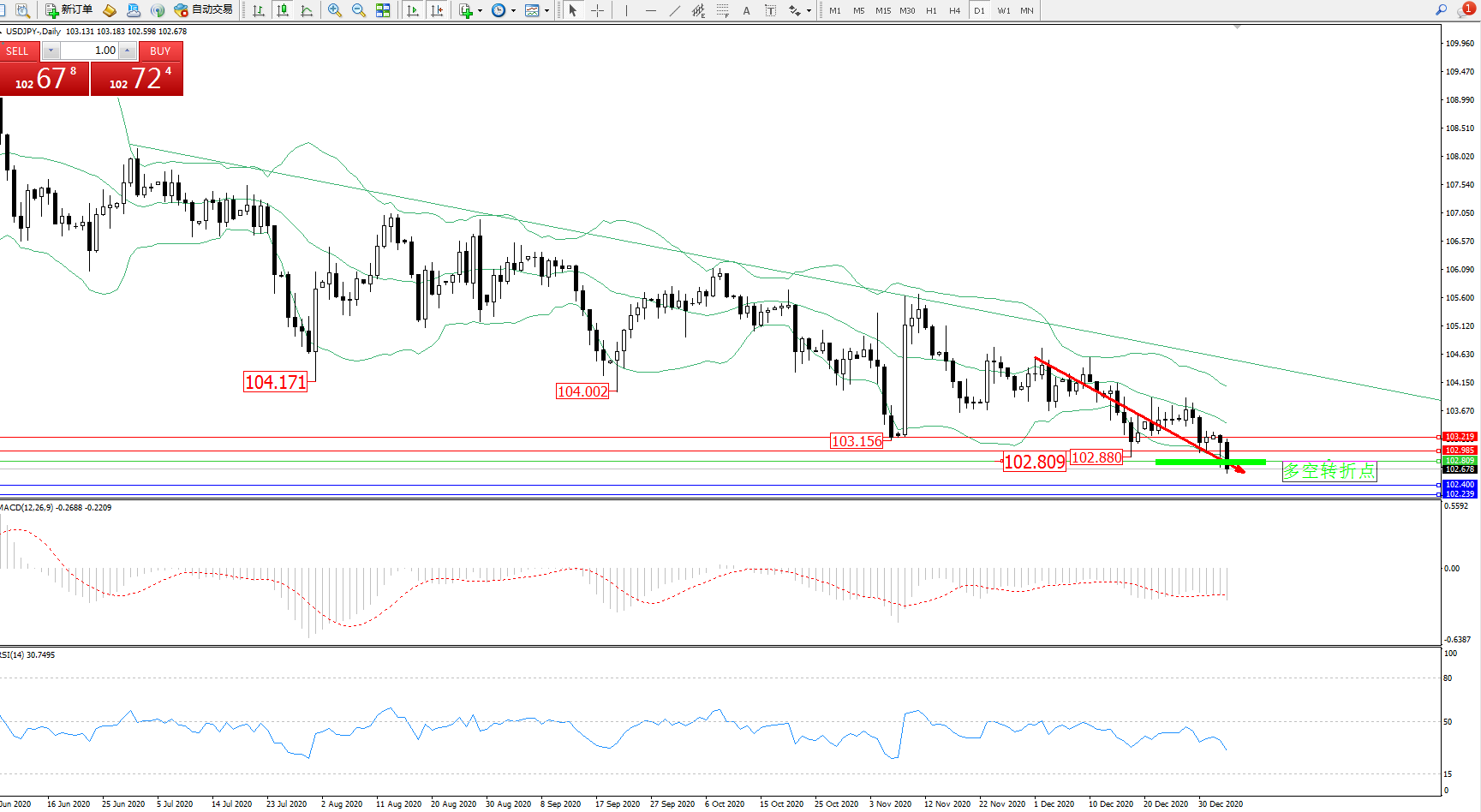 交易策略:102.809下方看跌,目标 102.400、102.239