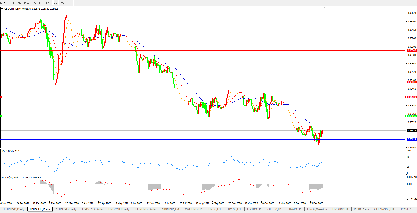 技术面简析:日线图均线开始拐头上行,汇价延续反弹走升态势,MACD运行于0轴下方但量能持续缩量,RSI继续拉升,预计短期汇价大概率将进一步反弹上行。
