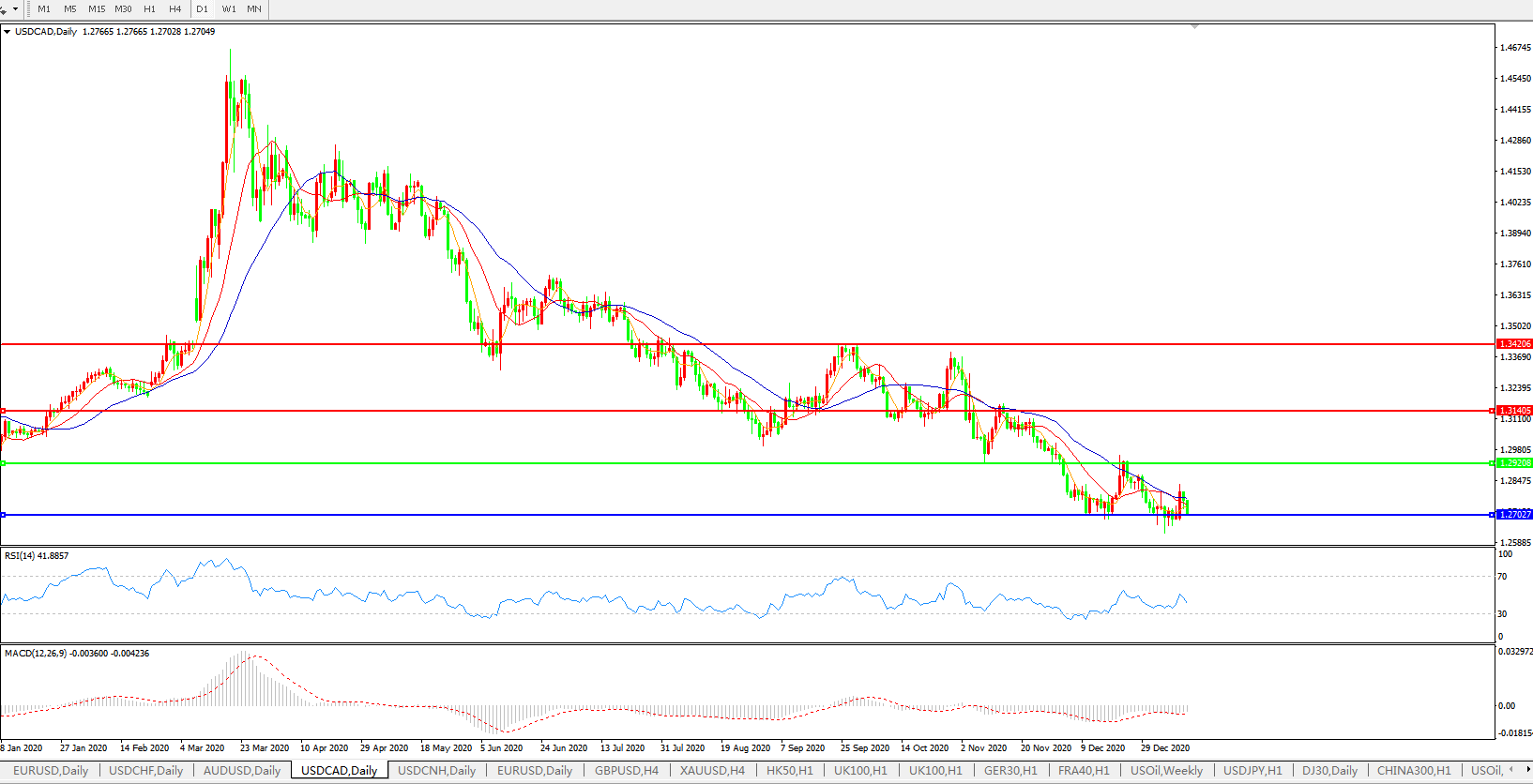 美元兑加元USDCAD    日线图: