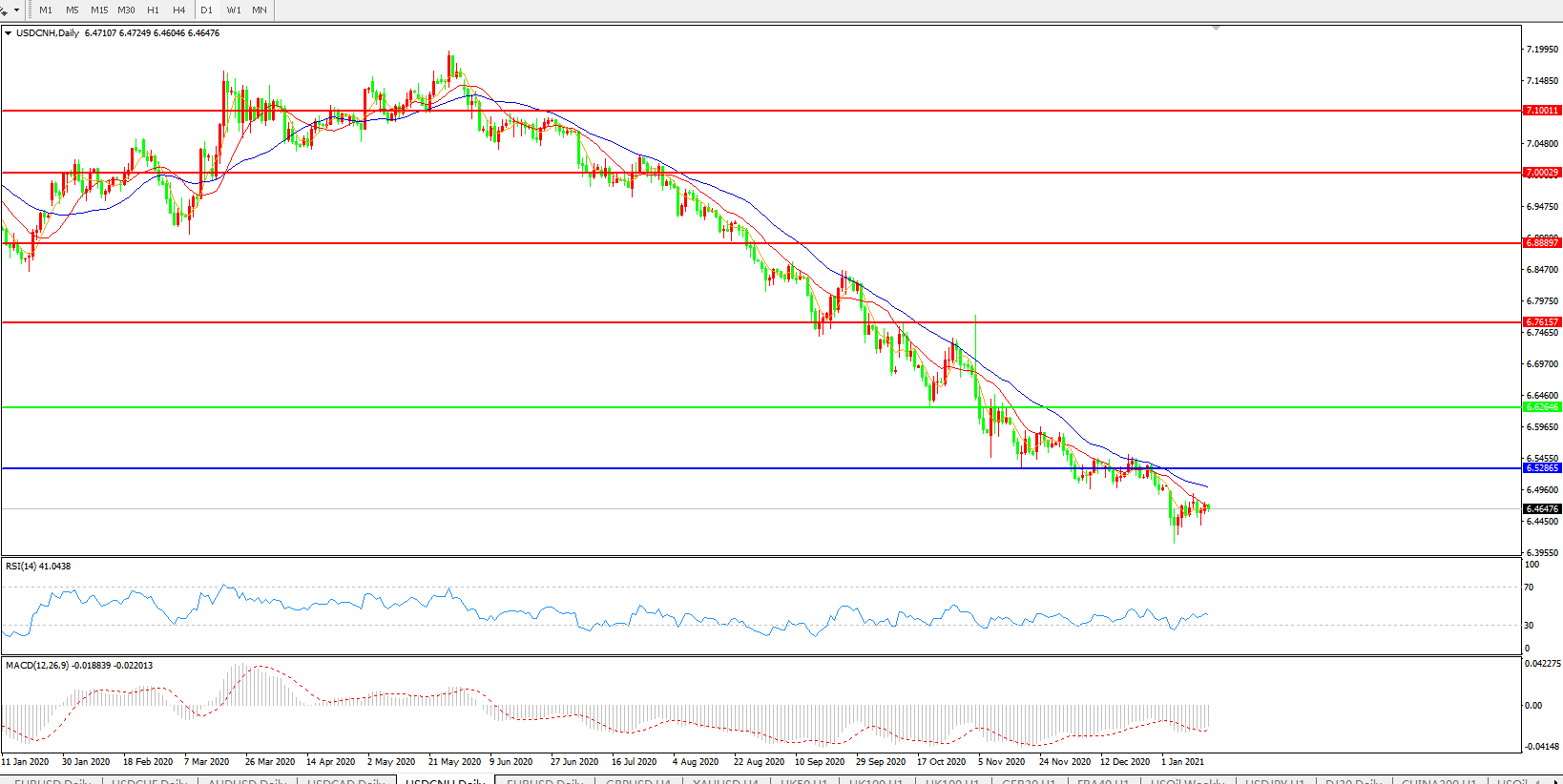 备选策略: 在6.6265之上,看涨,目标价位为6.7615,然后为6.8889。