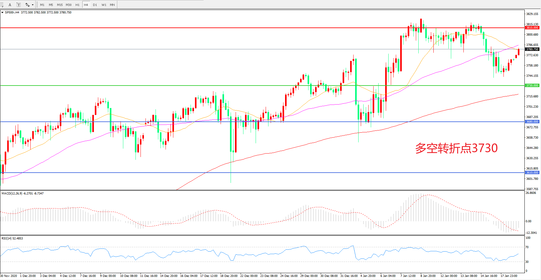 交易策略:在3730.00之上看涨,目标3810.00          3900.00