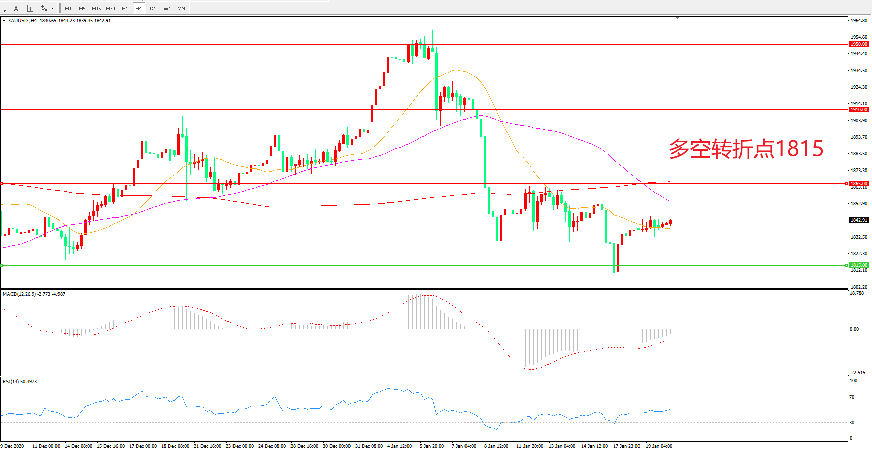 多空转折点:1815.00