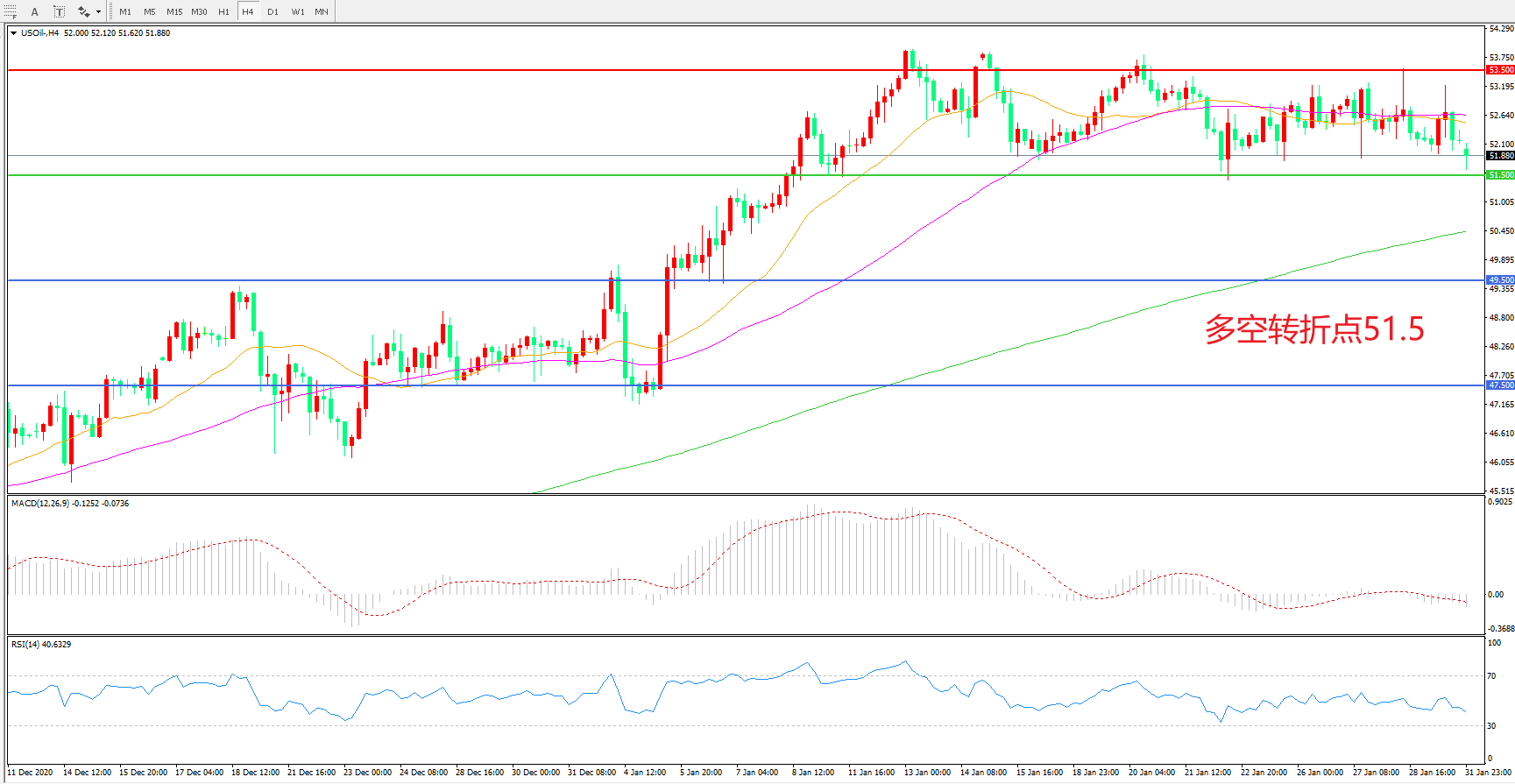 交易策略:在51.50之上看涨,目标53.50    57.00