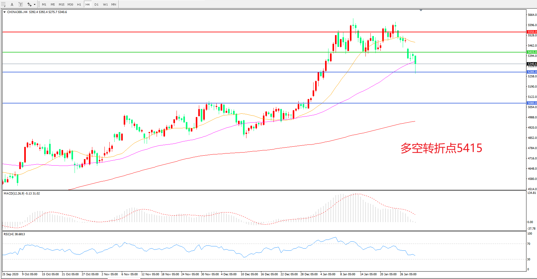 交易策略: 在5415.00之下看跌,目标5285.00 5080.00