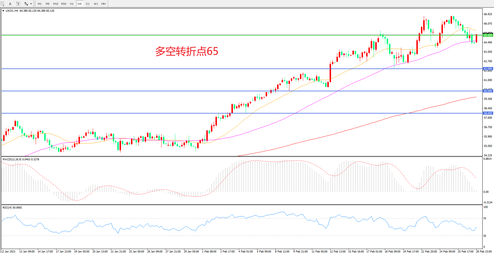 多空转折点:65.00