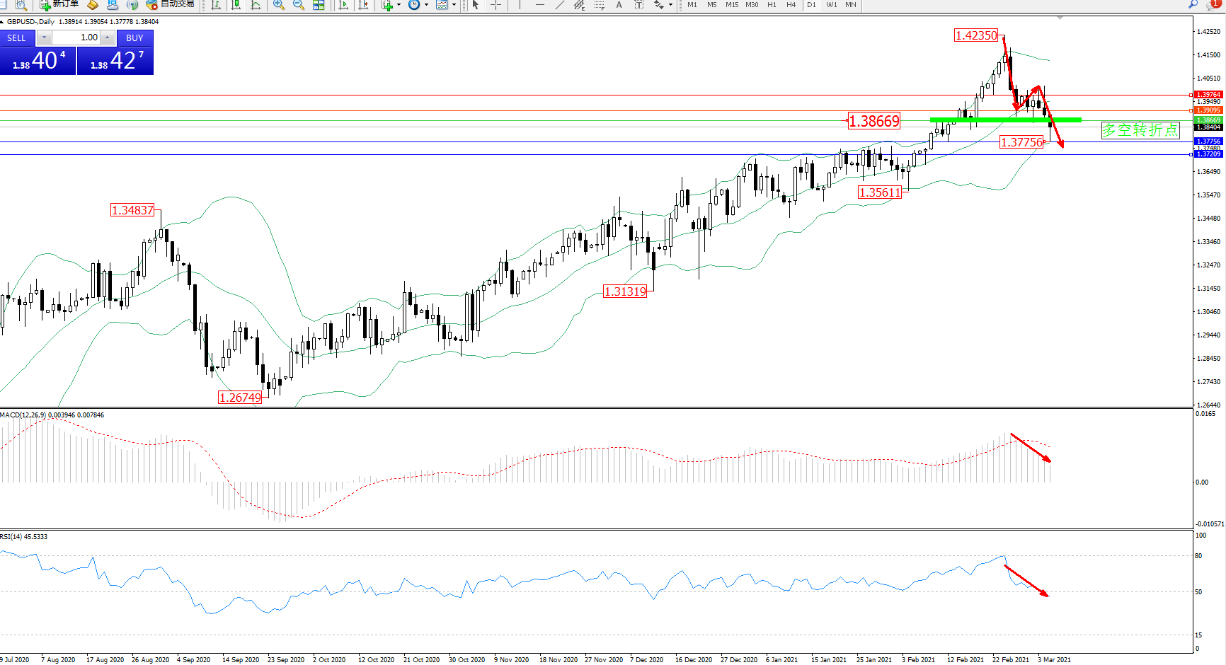 备选策略:1.38669上方看涨,目标1.39095、1.39764