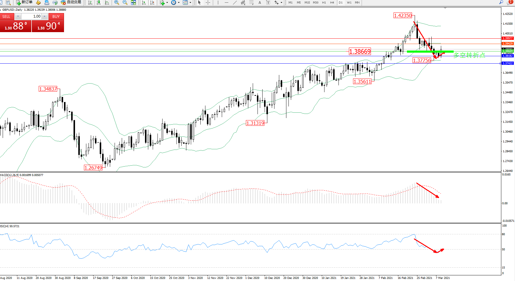 交易策略:1.38669上方看涨,目标1.39429、1.39977