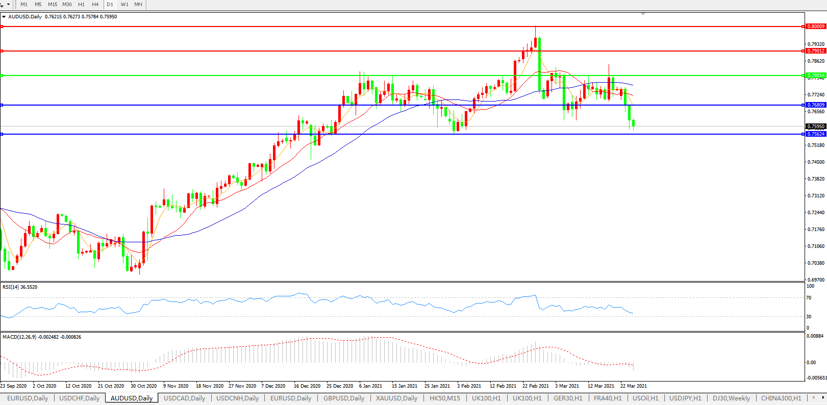 交易策略:0.7800下方看跌,目标0.7680、0.7560