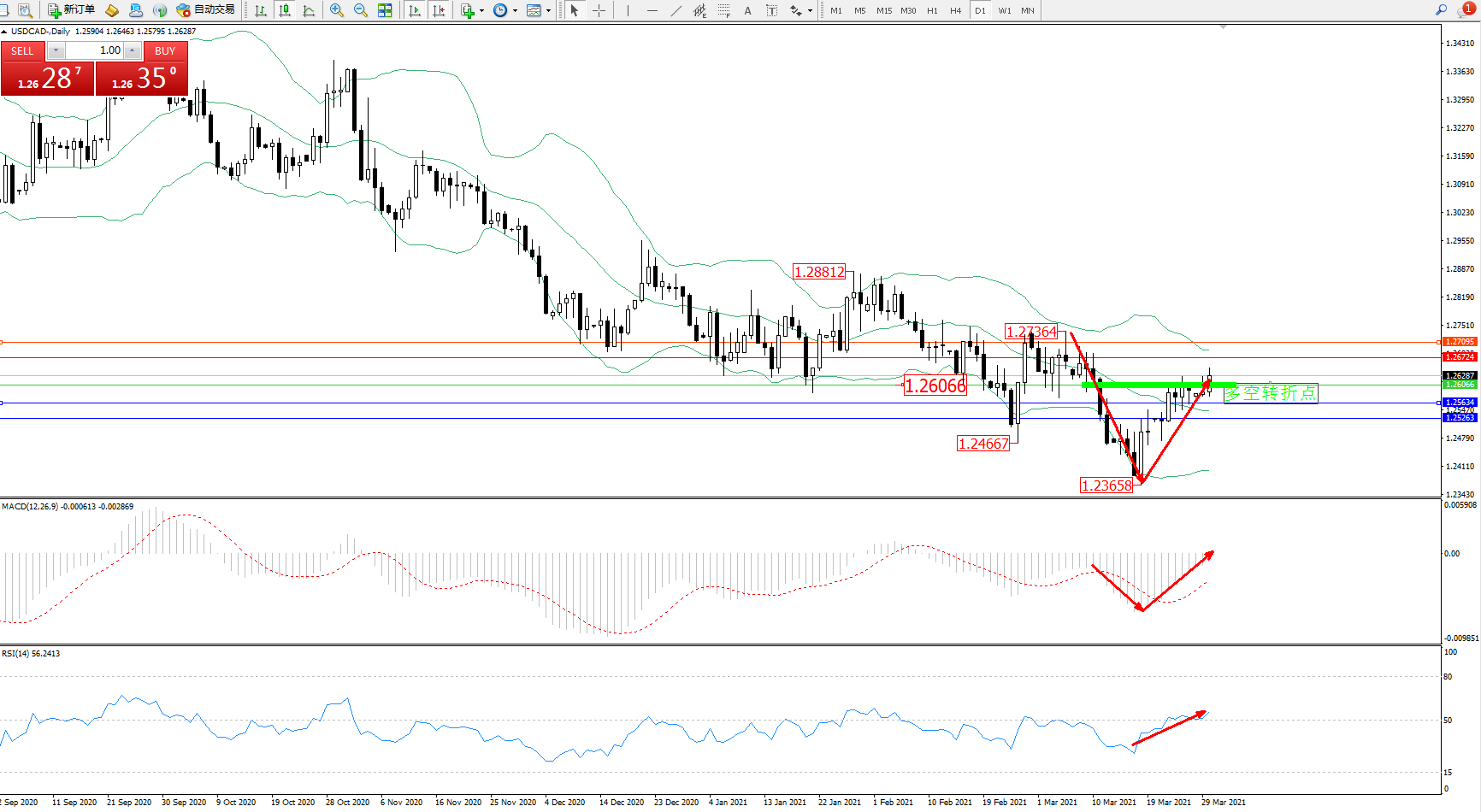 交易策略:1.26066上方看涨,目标1.26724、1.27095