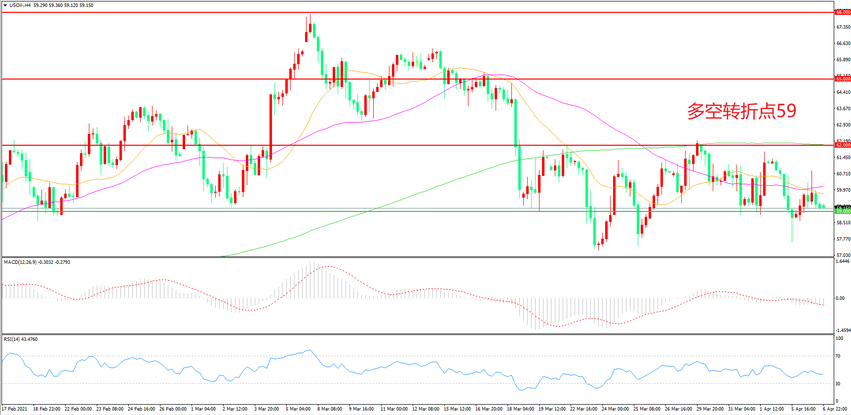 周二(4月6日),苏伊士运河再度出现临时堵塞,油价一度跳涨,但多头并能并没有能够把握住胜利的成果,美国WTI原油最高摸到60.86美元便开始一路下行,最终收报59.17美元/盎司。昨天EIA月报公布,分别上调了今年和明年的原油价格预期,同时下调了明年全球的原油增速,下调了美国原油产量的预期,整体来看,报告的内容中规中矩并没有对行情产生较大的影响