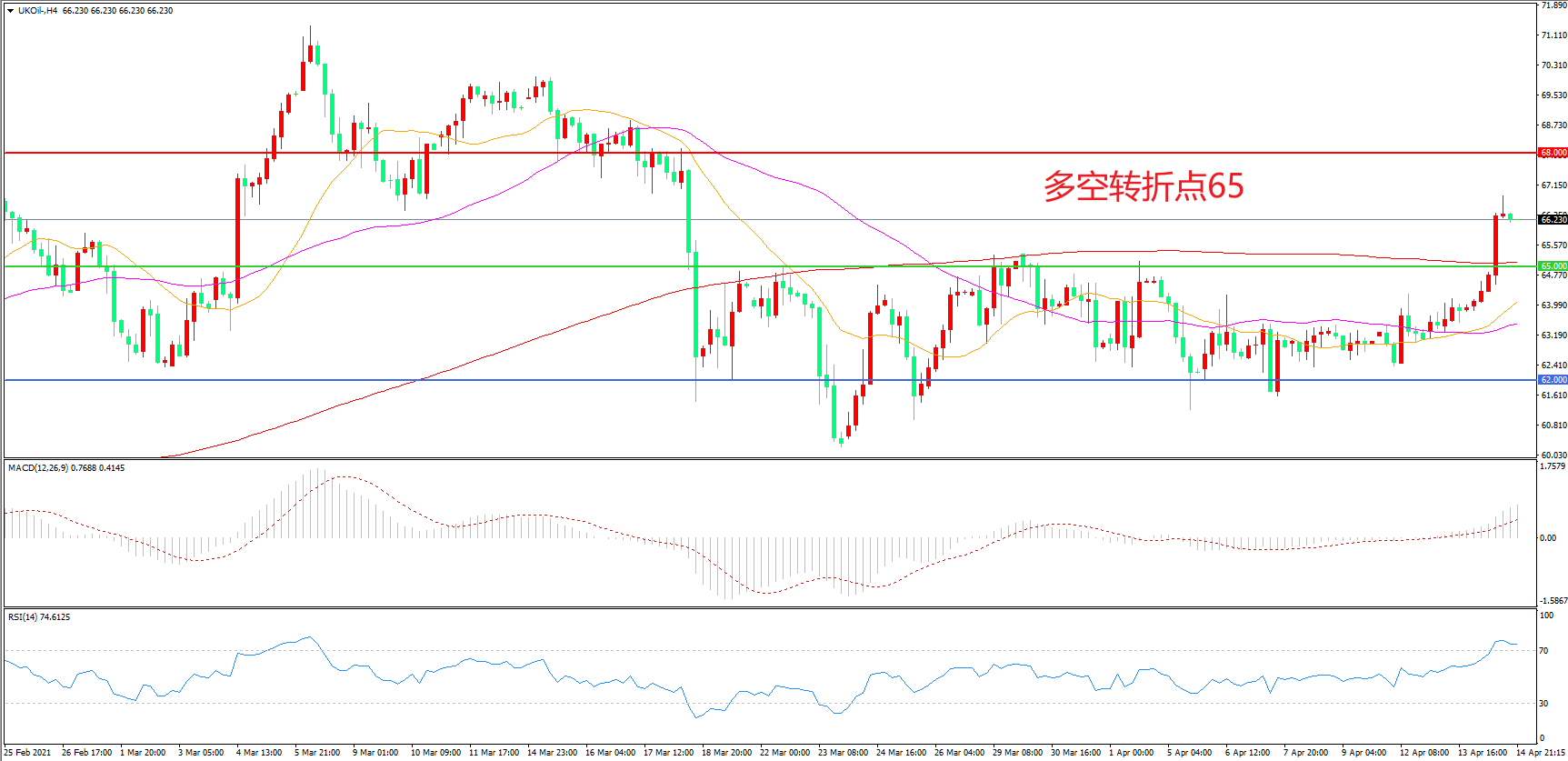 周三(4月14日),根据美国能源信息署公布的数据显示,当周EIA原油库减少589万桶,远高于市场预期,数据公布后,布伦特原油大幅拉升,收报66.23美元/盎司。此前国际能源署发布一份报告,上调了原油需求预估。IEA表示,美国快于预期的新冠疫苗接种速度和新增确诊病例的大幅下降促进了“社交和人员流动,需求回暖的希望提振了人们对经济复苏的乐观情绪。
