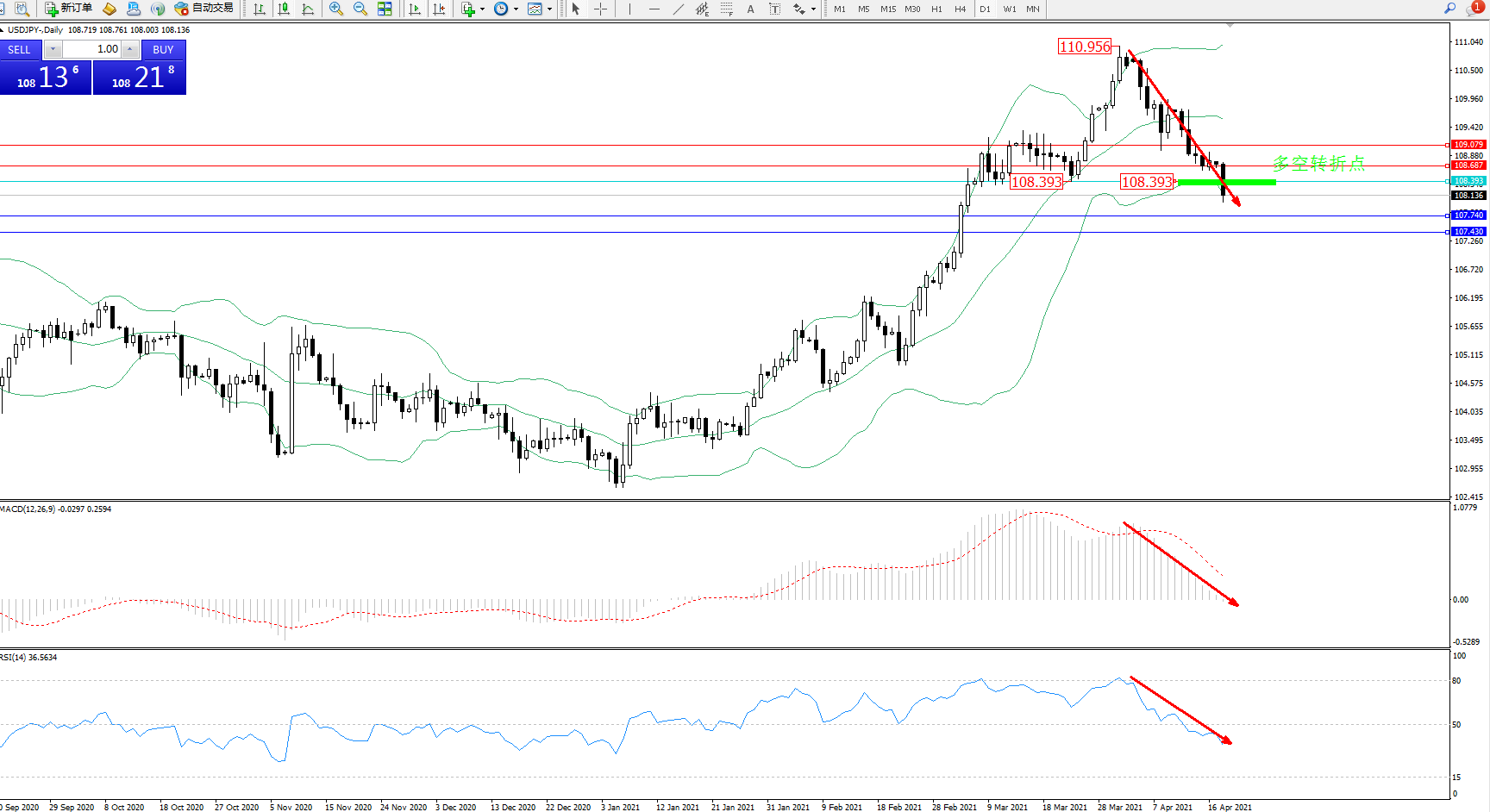 美元兑日圆持续下挫至108.136附近震荡,日本3月出口录得逾三年来最强增长,主要得益于对华出口激增,这一迹象表明,日本经济将继续从去年新冠疫情导致的严重衰退中复苏。但贸易数据不大可能完全缓解人们对日本经济复苏脆弱的担忧。2020年第一季,新冠疫情导致全球贸易崩溃,全球第三大经济体--日本经济遭受巨大打击。基础通胀效应已经开始提升美国消费者物价指数(CPI)在未来几个月的同比涨幅,这可能导致美国5月份整体CPI涨幅接近4%。尽管如此,我们也预计美国的通胀压力将在今年下半年得到缓解。如果美国通胀前景以预期的方式展开,那么美国国债收益率和美元汇率可能会在今年晚些时候有所回落,从而支持日圆升值。